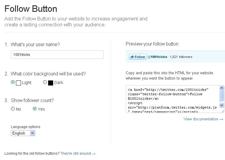 Twitter has launched its new follow button for blogs and websites. The main feature of this new button is that it helps the blog visitors to follow your twitter account without leaving your blog.