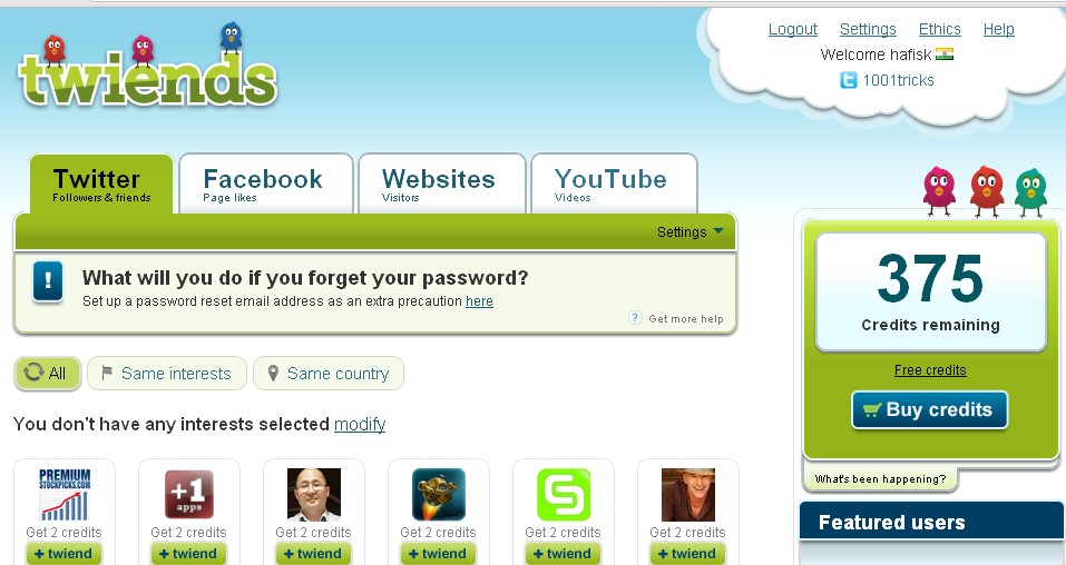 - Go to Twiends and sign up for an account.